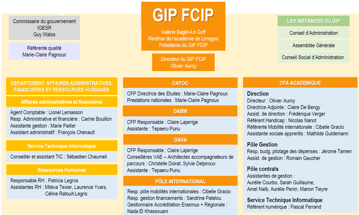 Le Groupement d’Intérêt Public « Formation Continue et Insertion Professionnelle » (GIP FCIP), créé en 2002, est constitué pour une durée indéterminée entre l’État, représenté par la rectrice de l’académie de Limoges, le Greta du Limousin, l’Université de Limoges, le Cnam. .